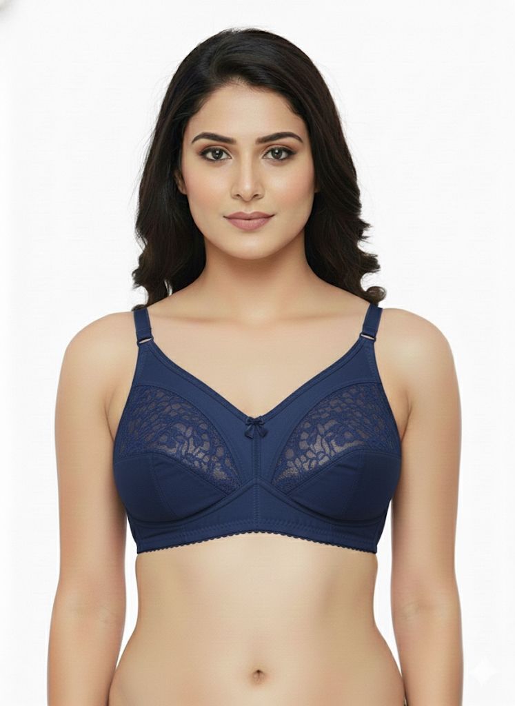 Stay comfortable all day with this Casual Soft Cotton Bra, featuring breathable fabric and gentle support. Available in Skin, Black, Blue, and Mehroon in sizes 32–42.